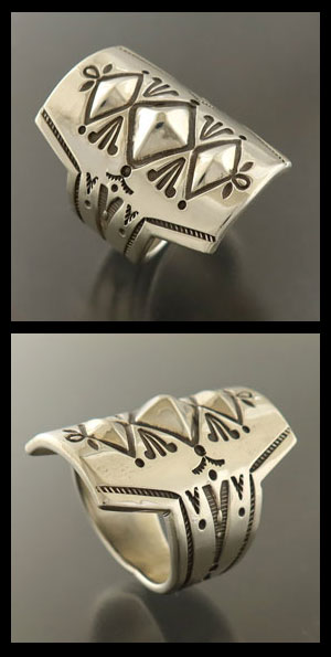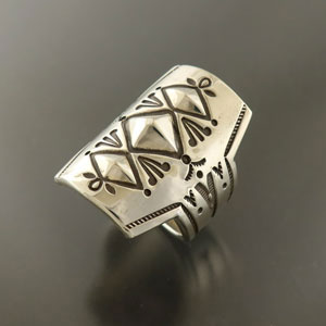 ナバホ族の若手アーティスト、クレンドン ピート 【 Clendon Pete】のエンボスハンドスタンプリングです。