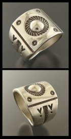 厚みのあるシルバー(12ゲージ)を使っているのでスタンプが深く、デザインが浮き出ている感があります。