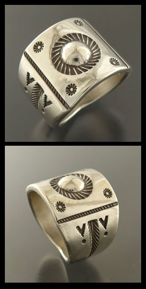 ナバホ族の伝統的な力強い男性的なデザインが特徴です。