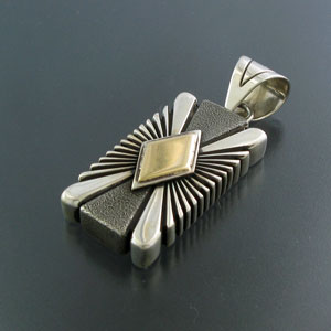 もともとはパットさんの力強いスタンプを最大限に活かす為、No1フラットワイヤー(5mm厚)のシルバー板をお渡しして、BRONCO特注ペンダントを作って頂いたのが始まりで、今ではすっかり定番となっています!